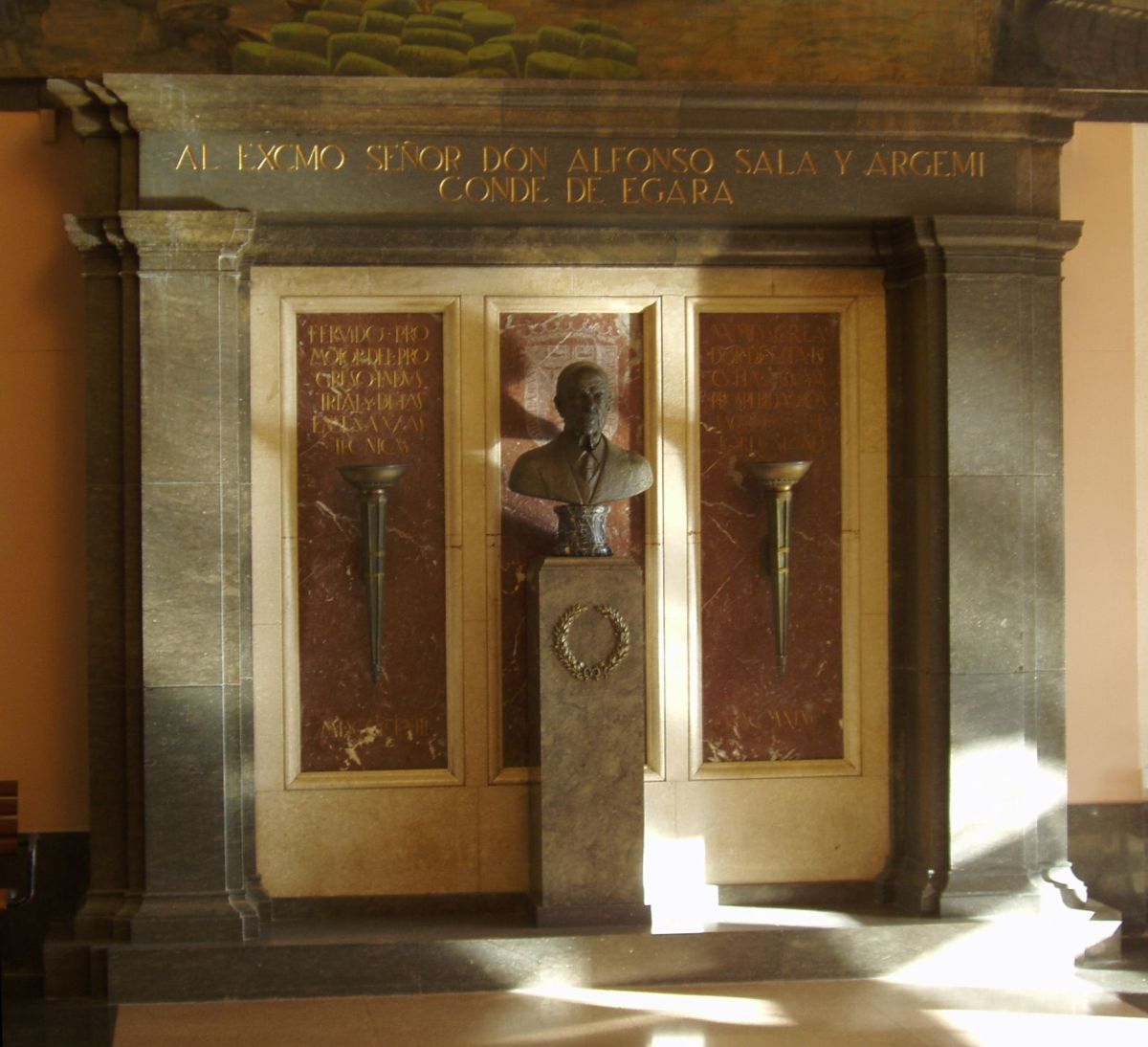 Entre els seus projectes més remarcables cal destacar, a Terrassa, el Monument a Alfons Sala, comte d’Ègara (figura 2), situat a l’edifici històric de l’Escola Industrial, que projectà el 1945 en record del benefactor local, traspassat aquell mateix any, i que s’inaugurà el 1948. Inclou el bust de Sala, obra de l’escultor Enric Monjo. També cal esmentar la Sala de Juntes del Condicionament Terrassenc (figura 3), on Blanxart intervé amb un disseny integral, per al qual concep la decoració i el mobiliari, un conjunt sobri i elegant de visible arrel toscana. Aquest és un molt bon exemple dels seus projectes d’arquitectura d’interiors, en els quals fa conviure materials i tècniques de la decoració tradicional que, amb un estricte i curós procés, estudia i elabora fins a aconseguir l’objectiu desitjat.