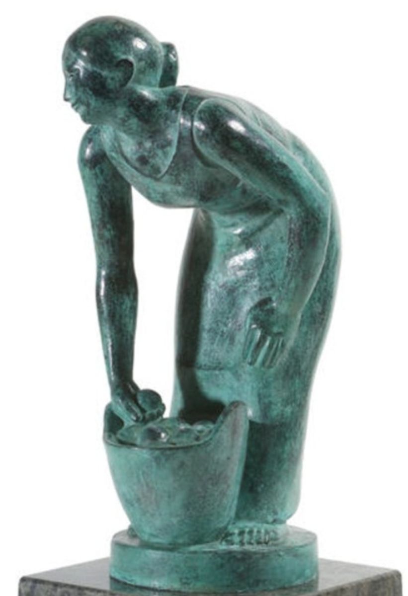 Armiño es va refer i va anar creixent en l’activitat que tant estimava —l’escultura—, amb noves creacions, nous modelatges, que ell anomenava monigotes. L’obra se centrava principalment en un classicisme poètic, recreant la figura femenina, però també treballava altres temàtiques. Les dues darreres exposicions retrospectives celebrades a Terrassa i a Castelló de la Plana són representatives per conèixer amb aproximació les singularitats del seu art i del seu ofici. Les escultures tenen una alçada d’entre 14 i 67 cm (la majoria de les peces fan entre 30 i 40 cm). La tècnica majoritària és la terra cuita, però també hi ha guixos, escaioles, bronzes, plates, fusta, fusta policromada, caobes, xiprers, pedra i relleu. Les figures femenines presenten, en general, formes estilitzades (en especial, les escaioles blanques), però també algunes peces tenen formes més arrodonides, que ens recorden l’estètica de Manolo. Hi figuren algunes verges, vestides amb les túniques clàssiques que presenten plecs a tot el vestit, en què Armiño demostrava un gran domini del modelatge i la precisió tècnica. Les escultures tenen ritme i fan accions, com ara recollir un cistell, dur en braços un nadó, donar el pit, abraçar un infant, portar una safata de fruites, tocar el contrabaix…, però l’escultor també aconsegueix el ritme per mitjà del simple gest, solt, lliure, que és moviment pur. Hi ha escultures que revelen contacte amb l’avantguarda: hi apareixen línies rectes i una certa geometrització. En la creació de les cares, es percep una simplificació de les formes i traços curts i prims que aporten un aire de modernitat. En canvi, en el gènere del retrat, els bustos de persones tenen un realisme extrem en els detalls i els matisos, per aconseguir acurades similituds amb les persones retratades. Era un professor de dibuix que en sabia molt. I ho demostrava dia a dia (figura 5).